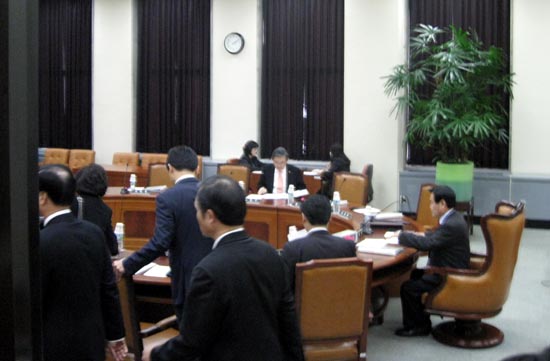 정청래 민주통합당 간사는 “서상기 정보위원장이 보이코트를 지시해 예산소위를 무산시켰다”는 점과 “본인이 의사를 안 묻고 정회를 한다”는 점 등을 들어 강력히 항의했고, 서상기 위원장은 “다 동의하지는 않지만 잘못된 부분은 사과한다”고 말했다고 전했다.