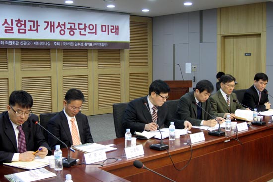 토론자로 나선 서호 통일부 남북협력지구지원단 단장은 “실제로 개성공업지구가 남북 간에 굉장히 어려운 국면에서도 완충역할을 지금 하고 있다”며 “북한 핵실험 이후 2월 13일 국회 상임위가 열렸는데, 류우익 장관이 분명히 ‘개성은 남북의 소중한 자산이고 대북제재의 수단으로 삼아서는 안 된다’고 말했다”고 재확인했다.