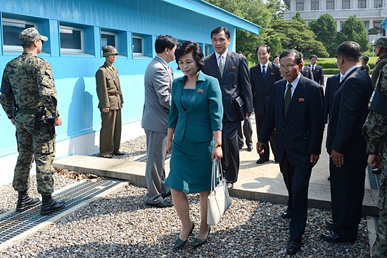 | 수석대표간 주요 환담 내용 천해성 남측 수석대표 : 오래간만에 하는 회담이고, 날씨가 좋음. 더운 날씨에 오시느라 고생이 많았음. 김성혜 북측 수석대표 : 몇 년 만에 진행되는 회담으로, 더운 날씨든 추운 날씨든 날씨에 크게 개의치 않음. 천해성 남측 수석대표 : 어제 내려왔는지? 김성혜 북측 수석대표 : 어제 내려왔음. 판문점 평화의 집은 처음 와봄. [제공-통일부] |