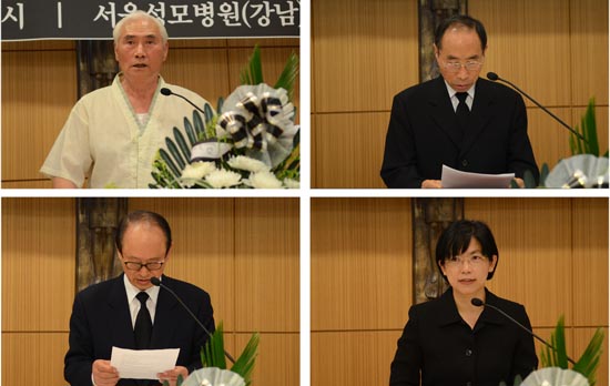 민중의례와 한국작가회의 공광규 시인의 약력보고에 이어 고인의 생전 육성 녹음이 흘러나오고, 이어 맹문재 시인이 <전위의 시인 이기형 선생님께>라는 조시를 낭송하자 장내는 숙연한 분위기로 빠져들었다.