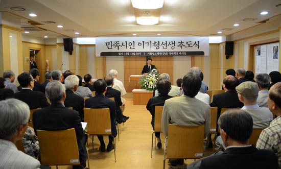 ‘민족시인 이기형 선생 통일애국장’ 추도식이 13일 저녁 서울성모병원 장례식장에서 미망인 방현주(90세) 여사와 유가족, 고인과 민족통일투쟁의 현장에 함께 했던 100여 명의 지인들이 참석한 가운데 열렸다. 향년 96세.