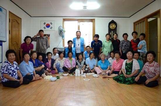 ▲ 점심 후 마을회관에 모이신 평균 여든 가까운 동네 어르신들. 올해 초 전쟁위기와 평화협정의 필요성, 현재의 통일정세와 국정원 사태 등에 관해 간단히 설명 드리고 기념사진을 찍었다. 놀랍게도 대부분의 현안을 알고 수긍하신다. 최고령 행진단의 최고령 간담회가 되었다. [사진 - 통일뉴스 류경완 통신원]