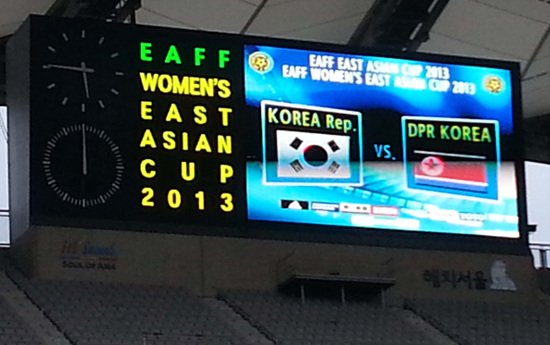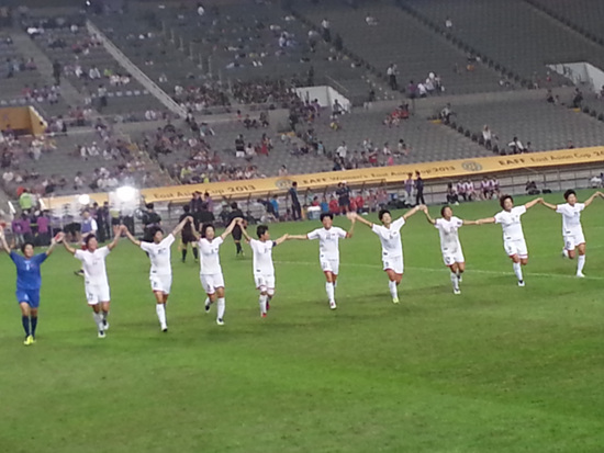 21일 오후 서울월드컵경기장에서 열린 ‘2013동아시안컵’ 여자축구 남북전에서 북측이 남측에 2 대 1로 이겼지만 승패는 그리 중요하지 않았다.