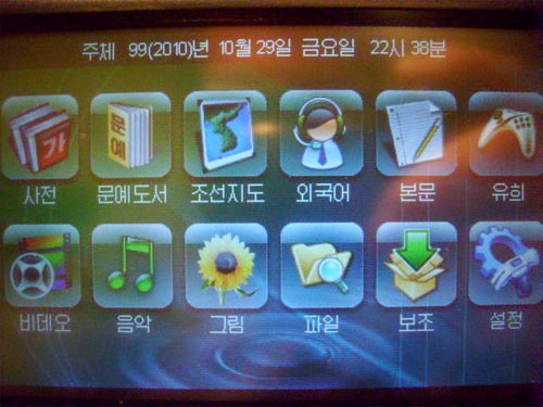 ▲ 2010년 북에서 생산한 ‘휴대용 다매체 전람기’(PDA)의 첫 화면. [자료사진 - 민족21]