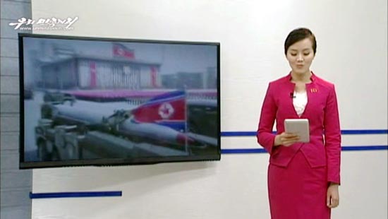 ▲ 북한 아나운서가 태블릿PC를 들고 방송하고 있다. [자료사진 - 민족21]