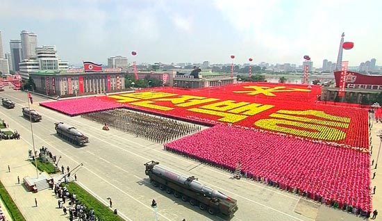 김일성광장에서 열린 열병식과 평양시민 군중시위 참석.