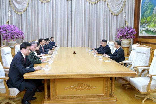회담에서 리 부주석은 “중국은 한반도의 이웃으로서 한반도의 비핵화 실현과 평화와 안정 유지 방침을 견지한다”는 중국측의 공식 입장을 전달했고, 이에 대해 김 제1위원장은 중국의 6자회담 재개 노력을 지지하고 한반도 평화와 안정을 위해 노력할 것이라고 밝혔다. 지난 5월 22~24일 최룡해 인민군 총정치국장이 특사 자격으로 중국을 방문해 밝힌 내용을 김 제1위원장이 직접 6자회담을 거론하며 재확인한 셈이다. 이에 앞서 24일 중국 공산당기관지 <인민일보>는 중국이 한국전쟁에 참전함으로써 동북아의 60년 평화를 이뤄냈다며 “한반도 문제의 근본적인 해결책은 평등한 대화와 담판에 있으며 한반도 통일은 한반도 남북 인민에 의해서만 이뤄질 수 있다”는 취지의 시론을 게재했다.