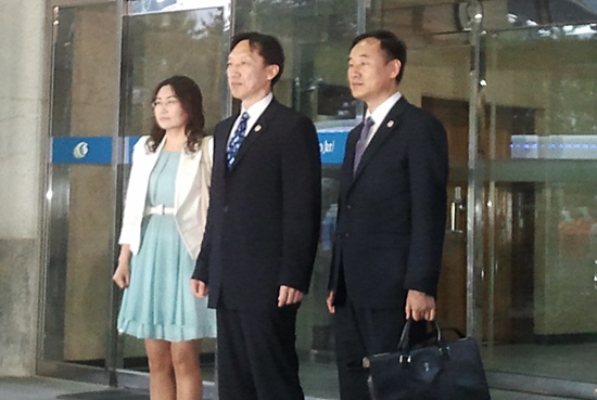▲ 남측대표단. 왼쪽부터 송혜진, 이덕행, 김성근. [사진-통일뉴스 이광길 기자]