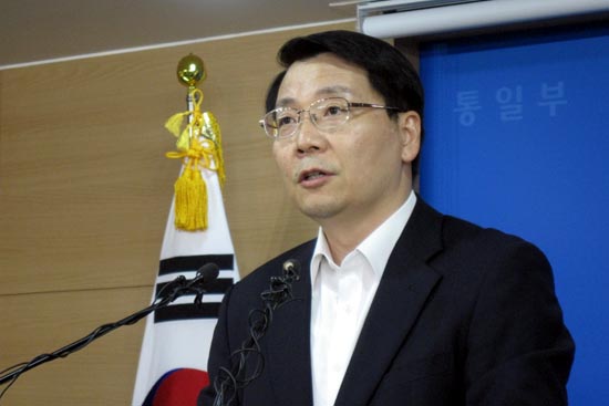 ▲ 김형석 통일부 대변인이 23일 오후 9시 5분 실무회담 결과를 브리핑하고 있다. [사진 - 통일뉴스 김치관 기자]