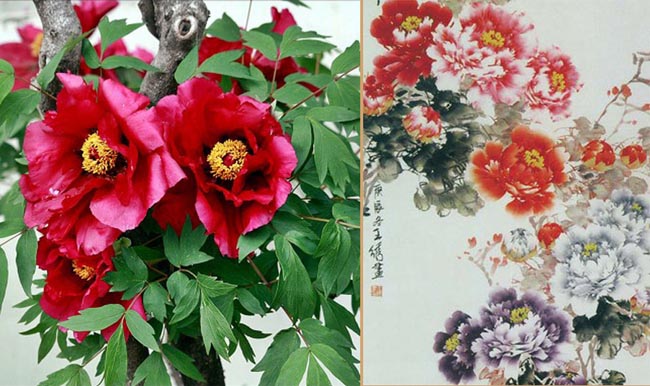 모란을 그린 그림도 발전해서 정교하면서 화려한 모란그림을 전문적으로 그리는 화가만도 수 만 명이 넘는다. 매년 여러 지역에서 모란축제가 열리고 더불어 수천 점의 모란그림이 전시되기도 한다.