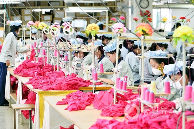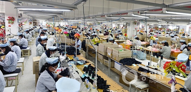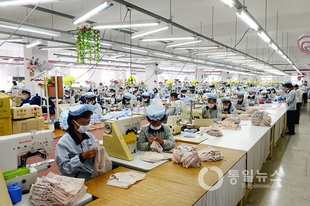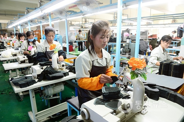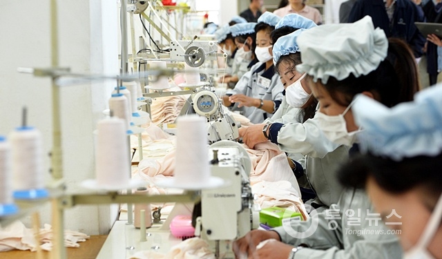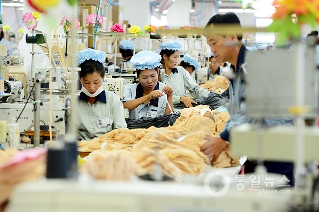 ▲ 미싱작업에 한창 몰두하고 있는 북측 근로자들.[사진-개성 사진공동취재단]