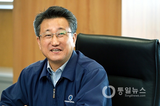 ▲취재진에게 공단 재가동 상황을 브리핑하는 홍양호 개성공업지구관리위원회 위원장의 얼굴에도 미소가 한가득이다. [사진-개성 사진공동취재단]