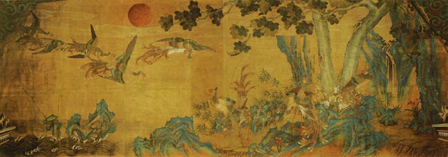 아무튼 비단에 채색을 한 그림이긴 하지만 수묵화 특유의 화법과 결합되어 있다.