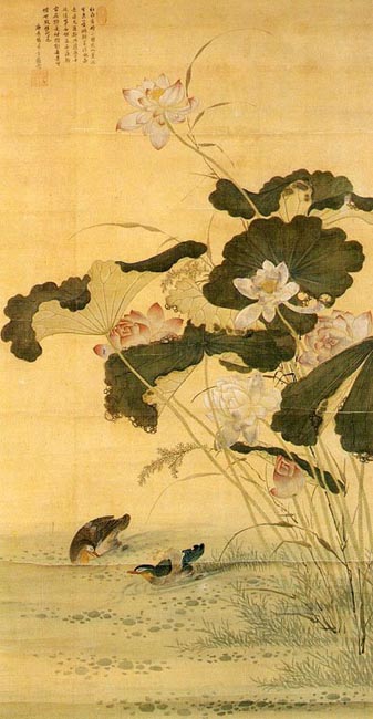 ▲ 심사정/연지유압(蓮池遊鴨)/비단에 채색/72.5*142.3/1760년/호암미술관 소장.