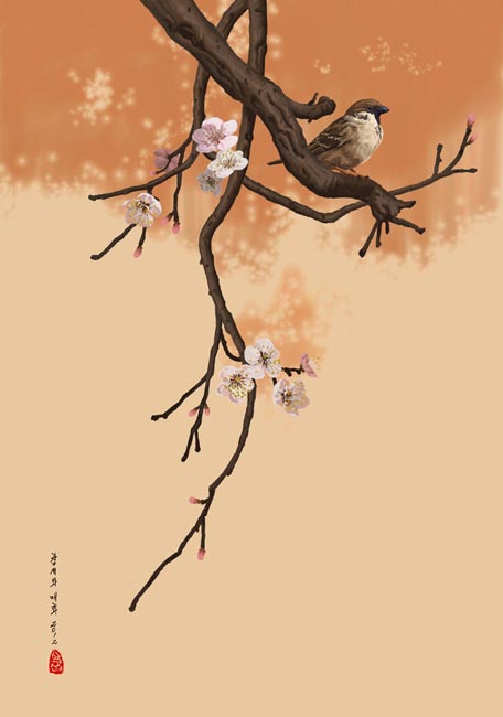 화조도는 주로 여성들의 공간인 안방에 걸었던 그림이다. 하지만 매화와 참새가 그려진 이 그림은 안방보다 남자들의 사랑방에 어울리는 그림이다.