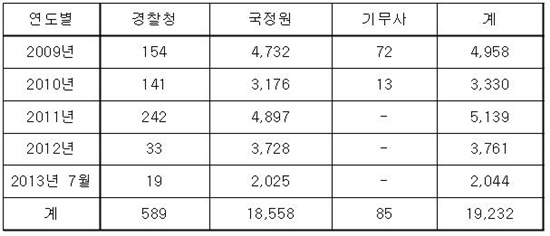 이 중 96%에 달하는 1만8천558건은 국정원에 의한 우편검열로, 이 기간 동안 경찰청 589건, 기무사 85건 보다 월등하다.