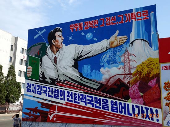 ▲ 평양 거리의 선전화. 북한은 지난해 위성발사 성공이후 ‘과학기술에 기초한 경제건설’을 더욱 강조하고 있다. [사진제공 - 박상권]