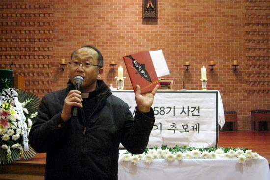신성국 신부는 “최근에 박근혜 집단은 KAL858기 사건 진상규명을 위해 활동해온 천주교정의구현사제단 신부들을 종북으로 몰아세웠다”며 “우리 가족회와 사제단은 KAL858기 사건이 하도 많은 의혹을 갖기에 진실이 무엇인지 알고 싶을 뿐이지 이것이 북한과 무슨 상관이 있느냐”고 반문했다.