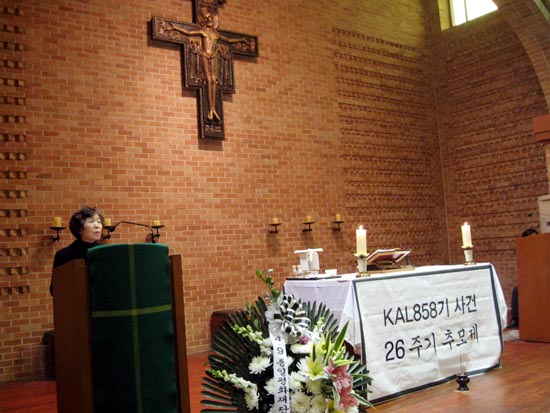 ‘KAL858기 가족회’와 ‘KAL858기 진상규명 시민대책위원회’는 29일 오전 10시 30분 서울 정동 프란치스코작은형제회 1층 성당에서 26주기 추모행사를 갖고 “한반도의 통일과 민주주의 회복을 위해 끝까지 이 사건의 진상규명을 밝히는데 멈추지 않을 것”이라고 다짐했다.