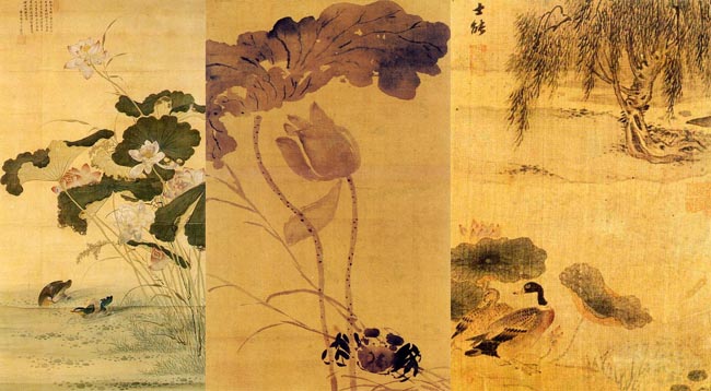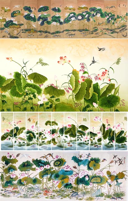 연꽃과 더불어 오리, 쏘가리, 게, 두루미 따위를 함께 넣어 그린다. 물론 연꽃만 그려도 된다. 하지만 이런 소재들과 함께 그리면 그림의 내용은 증폭되고 화면의 구성이나 표현이 다채로워지는 장점이 있다.