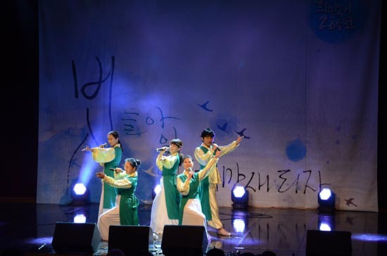 ▲ 노래극단 ‘희망새’ 창단 20주년 기념공연이 14일 조계사 내 전통문화예술공연장에서 열렸다. [사진-통일뉴스 류경완 통신원]