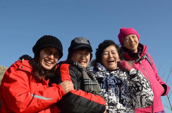 ▲ 인왕산 정상 앞에서 맨 왼쪽 류기진 선생(89세), “백 살까지 살아 기어이 통일을 볼 것”이라고 호언하신다. [사진 - 통일뉴스 류경완 통신원]