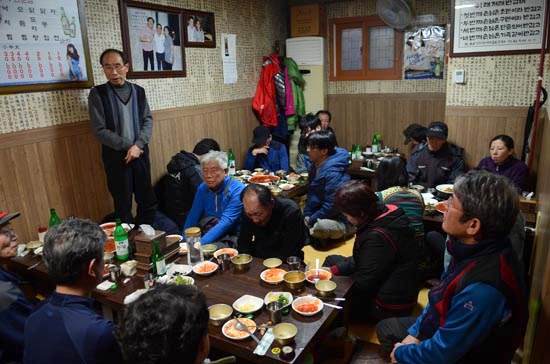 연로한 선생들과 겨울철 안전을 고려해 야트막한 시내 산을 택한 이날 등산에는 통합진보당 관악지구당 당원들과 신입회원이 새로 합류했다. 사직공원에서 출발, 정상과 둘레길을 거쳐 경복궁역 인근 식당가로 내려와 반주와 곁들인 맛있는 점심을 먹었다.