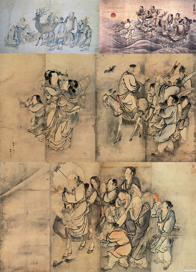 해상군선도가 서왕모를 알현하고자 약수를 건너오는 신선들의 그림인 ‘군선경수반도회도(群仙慶壽蟠會圖)’에서 시작했는지, 아니면 두 가지가 결합된 요지연도에서 신선 부분만 특화시켜 그렸는지는 조금 애매하다.
