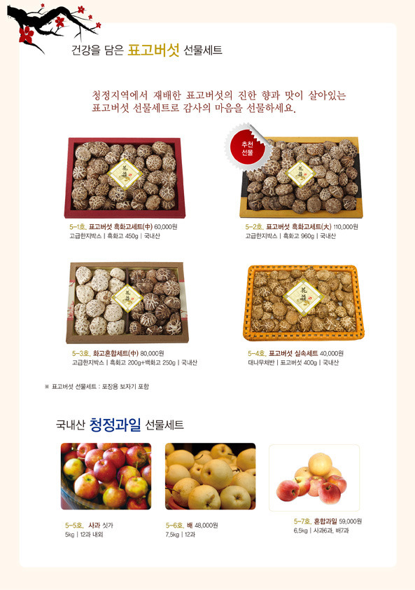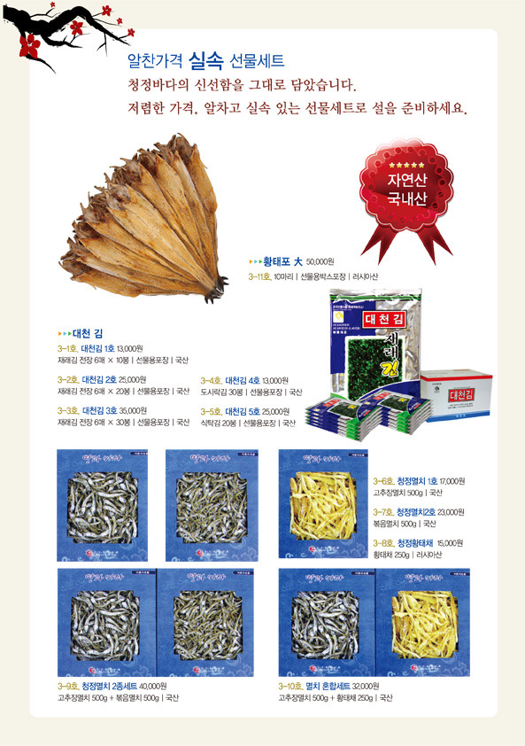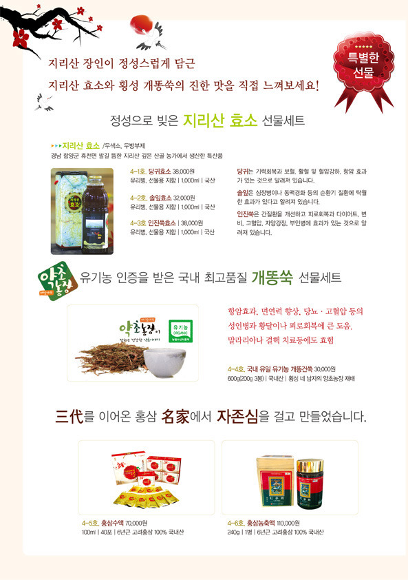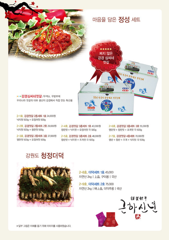 *일부 품목(한과, 젓갈 김, 효소, 홍삼제품)은 부가세 별도, 나머지 품목은 비과세입니다.