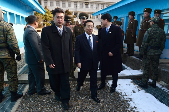 ▲남북 고위급 접촉 북측 대표단이 판문점 군사분계선을 넘어 회담장으로 향하고 있다. [사진제공-통일부]