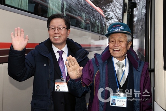 차량 5대에 나눠 탄 이산가족들은 류길재 통일부 장관의 배웅을 받았다.