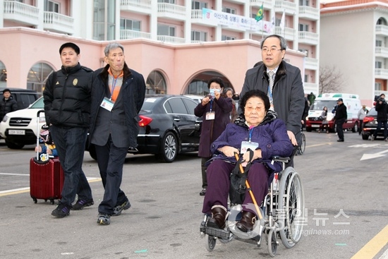 이날 김섬경 할아버지(91세)와 홍신자 할머니(84세)는 이동식 침대로 실려, 구급차를 이용해 금강산으로 출발했다.