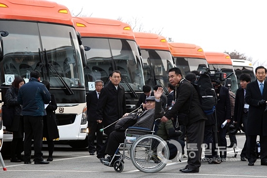 류길재 장관은 최정호 할머니(91세)의 휠체어를 직접 끌어주고, 버스 탑승 때도 부축해 자리를 안내했다. 최정호 할머니는 벌써부터 북측의 동생을 만날 생각에 눈시울을 보였다.