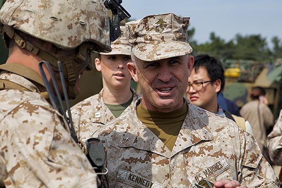 ▲ 해안에 상륙해 안내를 받는 케네디 미 제3해병원정여단장. [사진-통일뉴스 박귀현 기자]