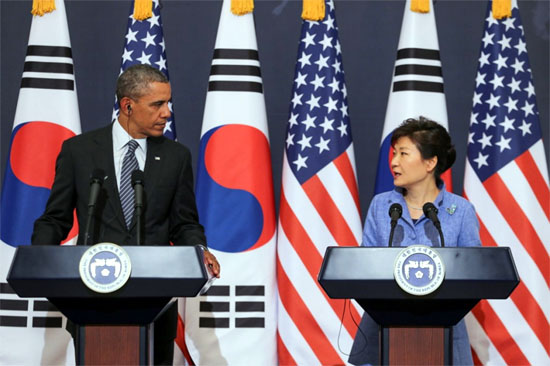 한국과 미국은 4월 25일 정상회담에서 ‘미사일 방어체계(MD) 강화’에 합의했다. 회담 후 박근혜 대통령은 ‘북핵, 미사일 위협 대응 역량 강화’를 명분으로 “한국형 미사일 방어체제를 독자적인 시스템으로 발전시켜 나가되 한미 간 상호 운용성을 증대시켜 효율적인 운영이 확보될 수 있도록 노력해 나갈 것”이라고 밝혔다. ‘상호 운용성 증대’를 내세워, 사실상 미국 미사일 방어체계로의 편입 수순을 밟는 것으로 이해된다. 또 2012년 7월 국민적 반발 여론에 밀려 서명 직전 좌절됐던 ‘한일 군사정보보호협정’ 대신 국회 비준이 필요 없는 ‘한미일 군사정보공유 양해각서(MOU)’ 추진을 공식화했다. 특히 어느 때보다도 북한의 인권문제에 대해 강도 높게 거론했다.