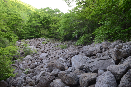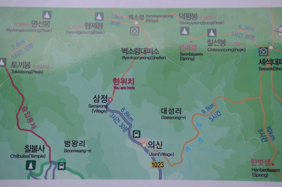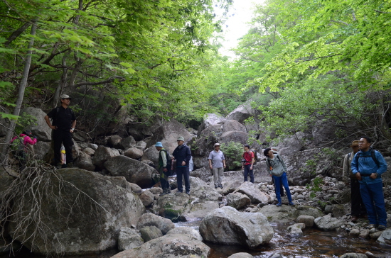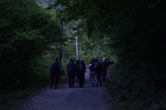 이현상 부대와 마지막까지 함께했던 기행 인솔자 김교영 선생(88세)과 연로한 몇 분은 차로 오르고, 새벽 미명에 가파른 포장로 3km를 걸으니 끝마을 삼정부락이다. 여기서부터는 산죽 숲을 헤치며 모두 걸어야 했다. 빗점골에 도착하니 여섯 시 반, 동이 트고 있었다.