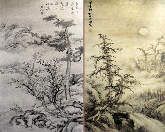 우측-김두량/월하산수도/종이에 수묵담채/82*49.2/1744년/국립중앙박물관.