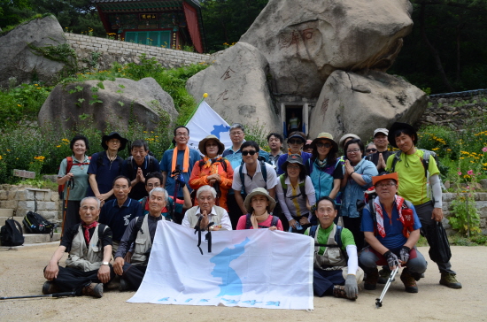 ▲ 사패산 산행중 백범이 한때 피신했던 회룡사 ‘석굴암’에 모두 모였다. [사진-통일뉴스 류경완 통신원]