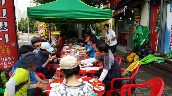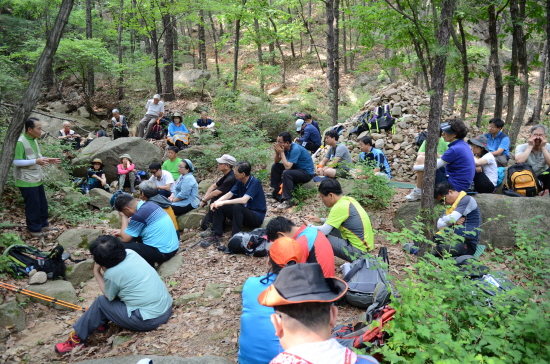 항상 그렇듯 식사는 인간에게 즐거운 시간이다. 이처럼 땀 흘린 뒤 먹는 식사란 더욱 그렇다. 한 사람, 한 사람이 가져온 도시락이야 비록 작을 지라도 이것이 모여 다양함과 푸짐함을 만들어 내니 항상 기다려지는 시간이다. 이렇게 즐거운 식사를 마치고 다시 우리는 회룡천을 따라 회룡사로 향했다. 항상 그렇듯 연로하셔서 정상까지 함께 하기는 힘드신 몇몇이 회룡사에서 우리를 기다리고 있었기 때문이다.