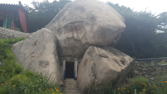 등반을 시작하며 계곡을 따라 오르다 처음으로 만난 곳이 회룡사 ‘석굴암’이었다. 암자의 입구의 소개 글에 의하면 ‘백범 김구가 상해로 망명하기 전 한 때 피신했던 곳’일 뿐만 아니라, 해방 후에도 ‘이곳에 자주 들러 자연을 즐기며 고금(古今)을 회상했다’고 전한다. 또 석굴암 입구 3개의 자연석에는 그의 친필(石窟庵, 佛, 戊子仲秋遊此)이 조각되어 후대에 전하고 있다.