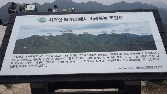 석굴암에 잠시 쉬며 석굴암과 백범의 인연을 생각하고, 다시 우리는 정상으로 올랐다. 비록 길지는 않지만 가파른 산길을 따라 땀을 흘리며 올랐고, 사패능선에 도착하여 다시금 잠시 쉬고 마지막 정상으로 향했다. 정상에서 남쪽으로 펼쳐지는 경치는 그야말로 장관이다. 좌로부터 자운봉, 오봉, 삼각산(백운대, 인수봉, 만경대), 노고산 등이 한 눈에 펼쳐져 보였다. 그 동안 힘들게 올라 오며 흘렸던 땀을 이곳에서 모두 식히고 다시 하산하며 우리는 식사할 곳으로 옮겼다.