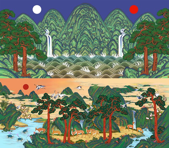 청색과 녹색이 화면 전체를 조율하고 있는데 생명력이 풍부한 이상세계라는 십장생도의 내용을 잘 충족시켜주고 있다. [자료사진 - 심규섭]