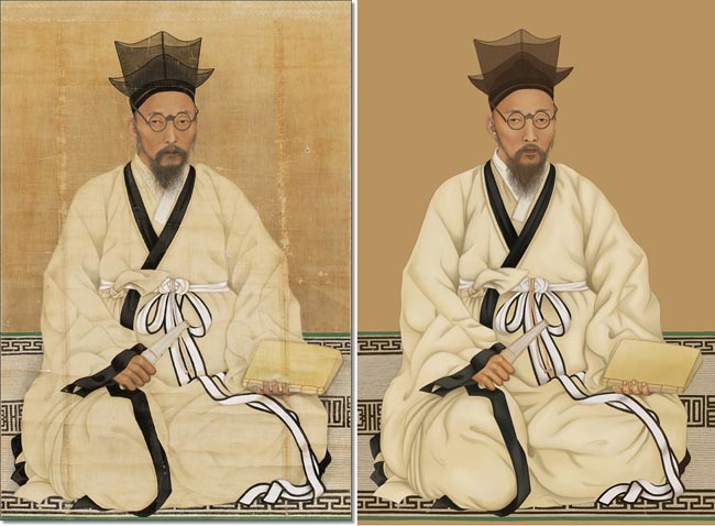 고종의 어진을 그린 조선말기의 화가 채용신이 그린 황현 초상그림을 안보영 작가가 디지털회화로 임모했다. 이 그림은 복원이 아니라 그림공부를 위해 모방한 것이다. 이를 통해 선대의 인물화를 배우고 나아가 현대적 가치를 만들어 내는데 그 목적이 있다. [자료사진 - 심규섭]