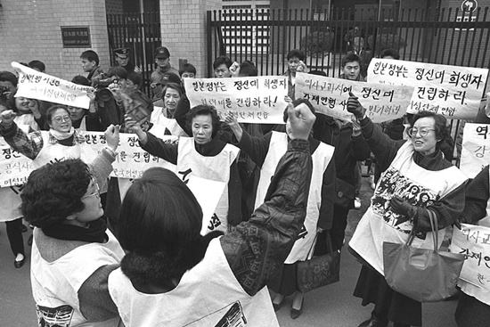 이에 '한국정신대문제대책협의회'(정대협)와 시민사회는 '일본군'이라는 가해자를 명확히 하고 역사적 용어인 '위안부'를 결합해 일본군'위안부'라는 용어로 사용하기로 했다.