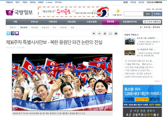 <국방일보>는 지난달 29일자로 홈페이지에 ‘제36주차 특별시사안보 - 북한 응원단 파견 논란의 진실’을 게재했으며, 자료 출처가 ‘국방부 국방교육정책관실’임을 명기했다. 이 기사는 <국방일보> 1일자 지면으로 그대로 실렸다.