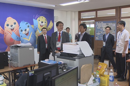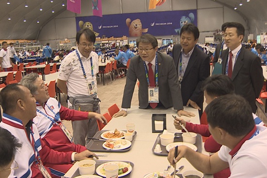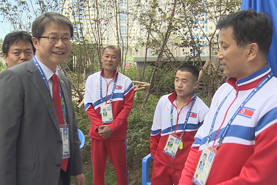이날 방문에서 류 장관은 뜻하지 않게 북측 선수단과 조우, 악수를 나누고 격려하는 상황이 연출됐다.