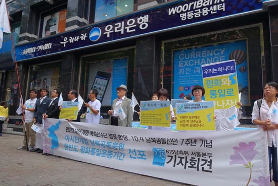민주노총 서울본부 조영란 통일위원장과 서울진보연대 최재봉 공동대표는 기자회견문 낭독을 통해 오는 19일부터 10.4남북공동선언 7주년이 되는 10월 4일까지 남북 선수단 선전을 기원하는 응원과 평화통일콘서트, 강연회 등을 열 계획이라고 밝혔다.