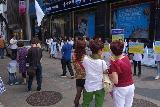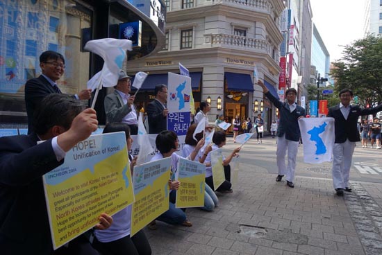 이들은 기자회견문을 낭독한 뒤 ‘손님 불러놓고 푸대접? 따뜻한 동포애로 북측선수단을 응원하자’는 내용의 홍보물을 시민들에게 나눠주며 기자회견을 마무리했다.