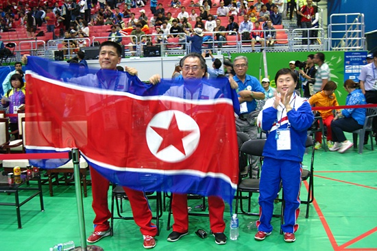 엄윤철 선수가 용상 170kg으로 세계신기록을 수립하고 금메달을 획득하자, 북측 임원 및 선수단은 '인공기'를 흔들며 눈시울을 붉히기도 했다.