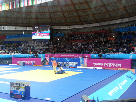 21일 5체급의 유도 경기가 열린 인천 도원체육관에는 민족화해의 메아리가 퍼졌다.
